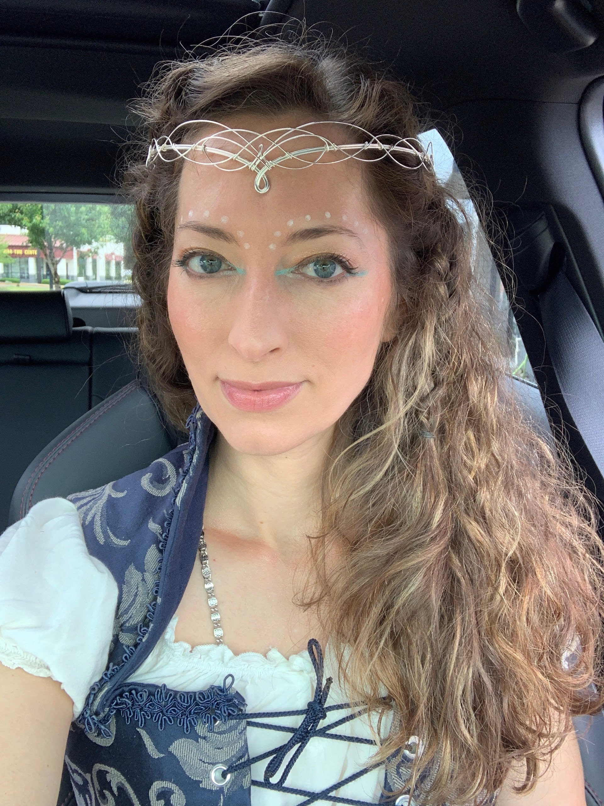 Super cute and fits any occasion perfectly. I bought this circlet as a headpiece to wear to officiate my daughter's wedding, and I love the simplicity and that it doesn't take away from her at all, yet it is still pretty enough to set me apart as officiant/priestess for the wedding. It is delicate and posable enough that if done carefully, you can mold it to your head for a better fit as well. Shipping is quick and packing is good. Will absolutely be shopping here again!